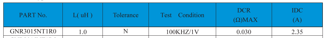 GNR3015NT1R0貼片電感電氣參數: